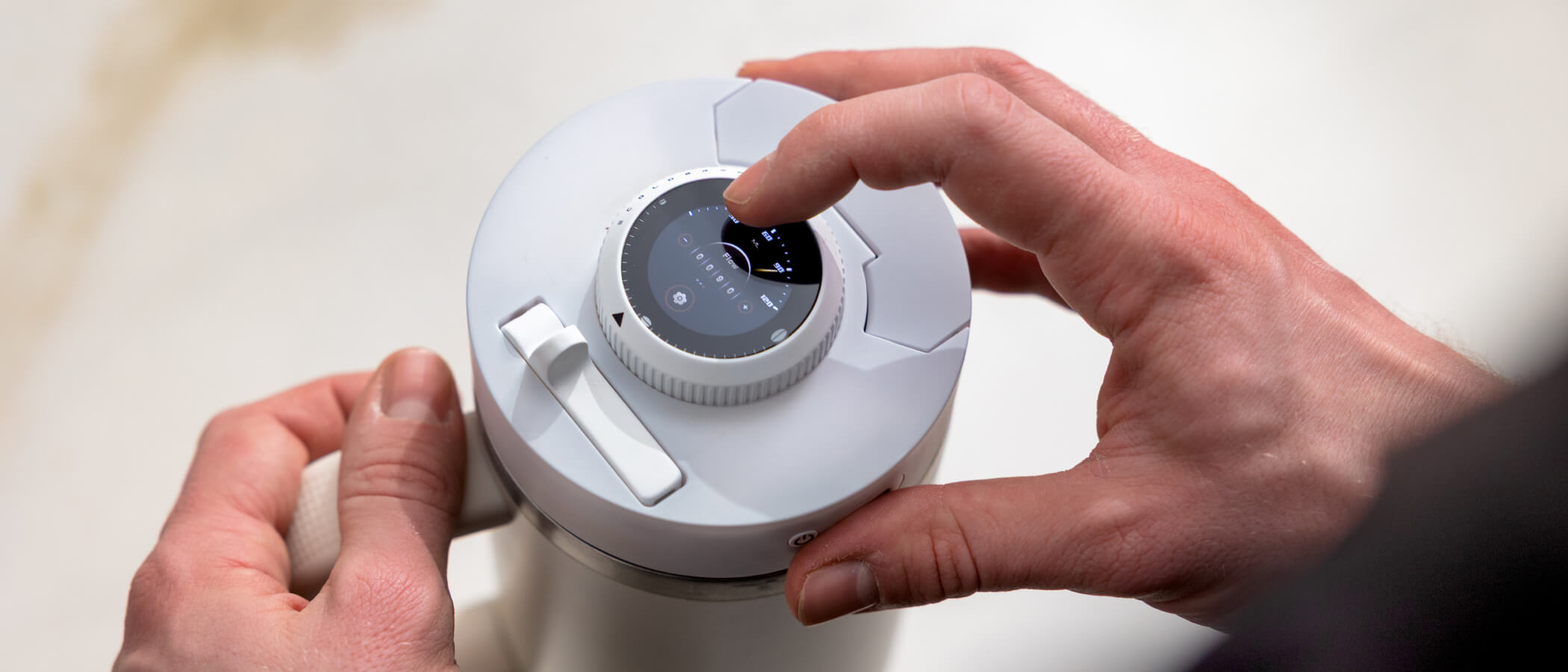 A circular OLED screen combined with a rotary knob allows you to navigate menus and adjust key brewing parameters, including grind size, centrifuge speed, water circulation rate, and extraction time, all with clear visual feedback and tactile control.